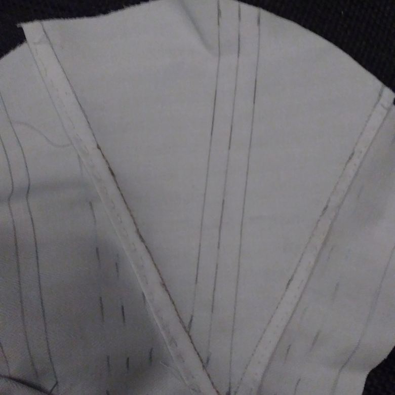 The scariest part of corsetry is the accuracy. I traced the pattern VERY carefully on my coutil and I’m sewing the first half of the felled seams by hand and then topstitching on my machine for neatness.