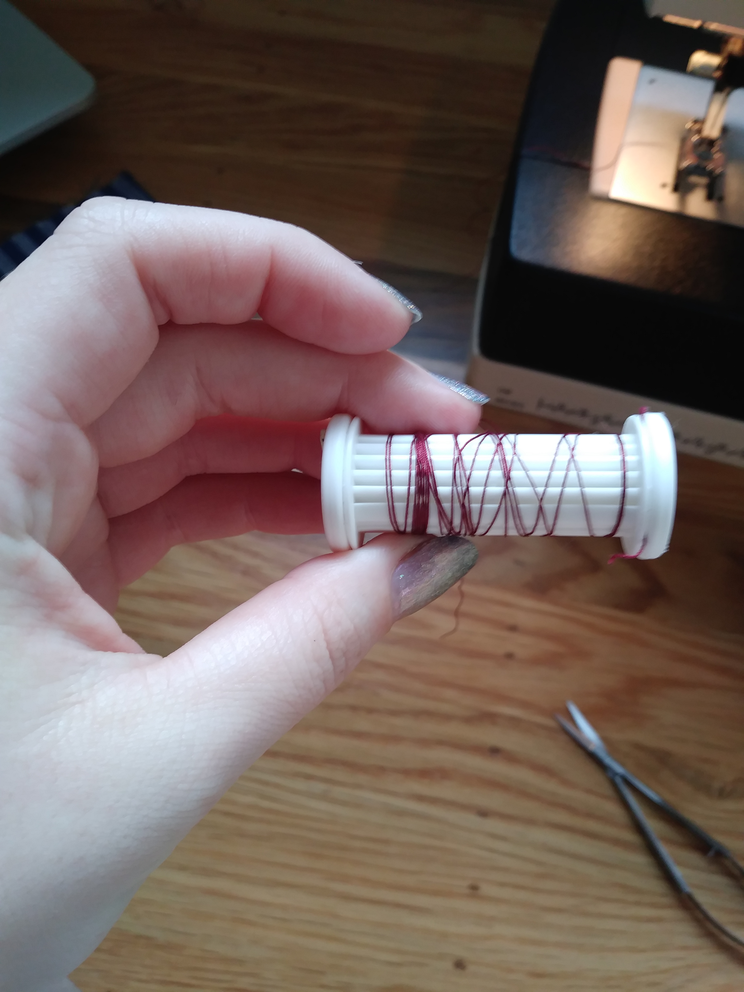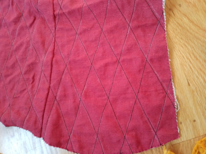 This was… easier said than done. There was some weird biasing going on, so it was really hard to both draw and sew straight lines. It looks better now than it did in-progress.