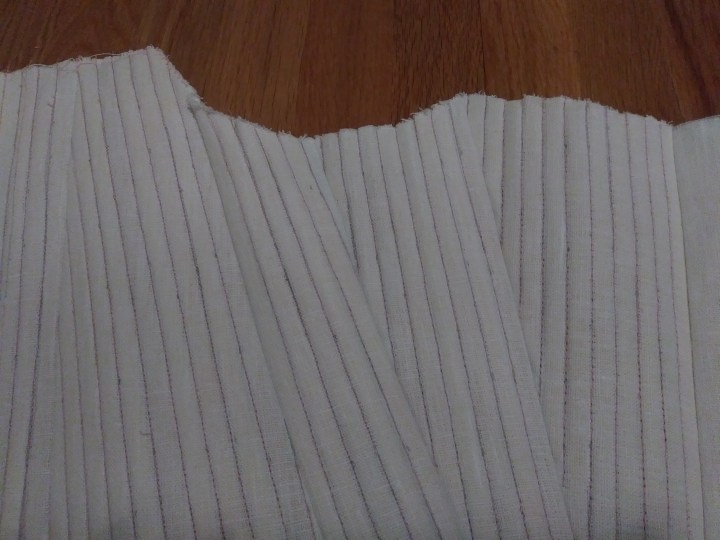 So I unpick half of the sewing I just put in and cut the other set of pieces out. Sewing everything together for real goes better right through sewing some mock boning channels on scrap to figure out the width.