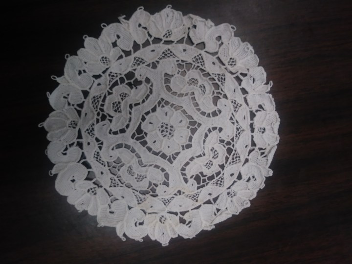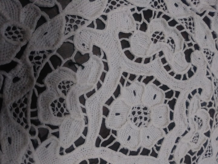 Originally a cottage industry, a rich Englishwoman introduced the technique to Ireland as a way for women to make money for their families. Each woman would have one motif that was hers– one leaf, one flower, one swirl– and these would be collected at a school or nunnery and joined together.