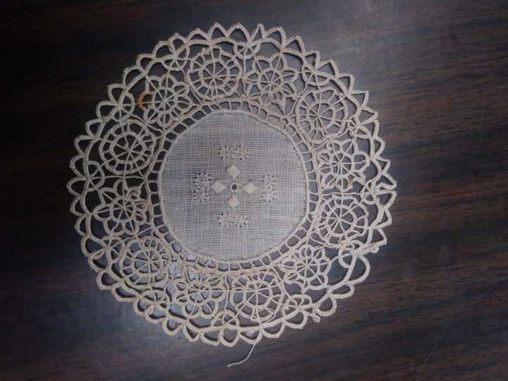 Needle lace is one of two “true laces,” the other being bobbin lace. Needle lace is done with needles… bobbin lace, unsurprisingly, is made with bobbins