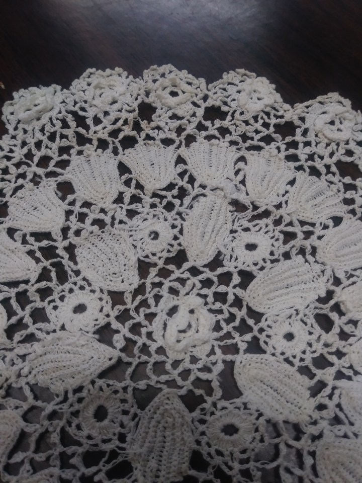 Compared to “normal” crochet Irish Crochet is very fine and three-dimensional. It is lush, fluid, and abstract, and can be surprisingly modern.
