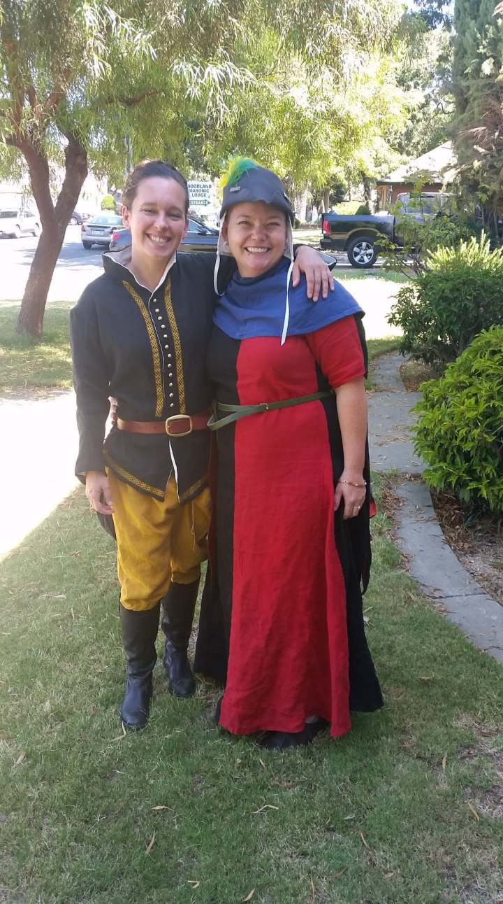 I was worried the sleeves were too short but no! Yay! And her squire belt makes my illogical trim pattern actually work…. My friend Darrin didn’t know I’d made her garb and told me “oh, I thought she looked extra spiffy!” which was a great compliment.