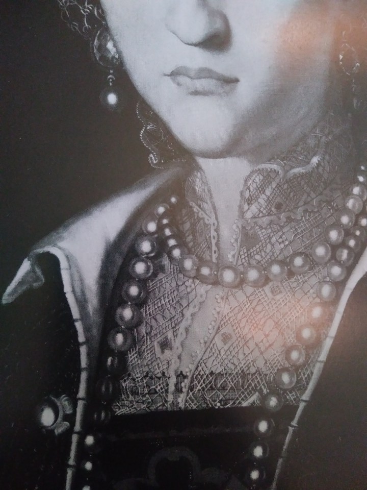 They’re barely visible under her partlet but check out the tiny picots on Elenor of Toledo’s smock.