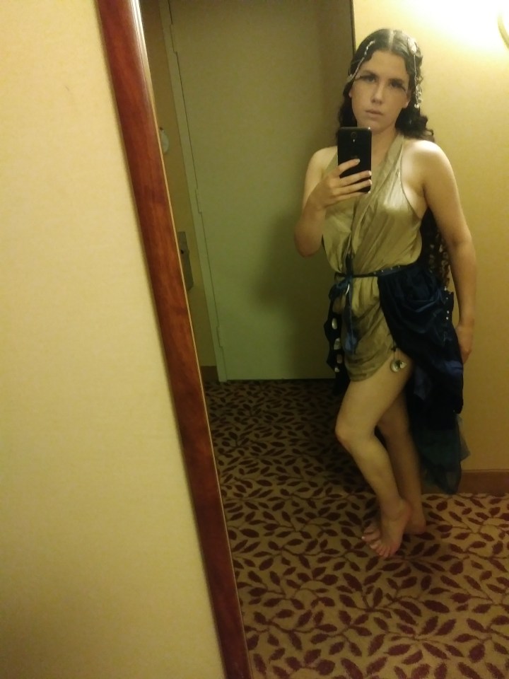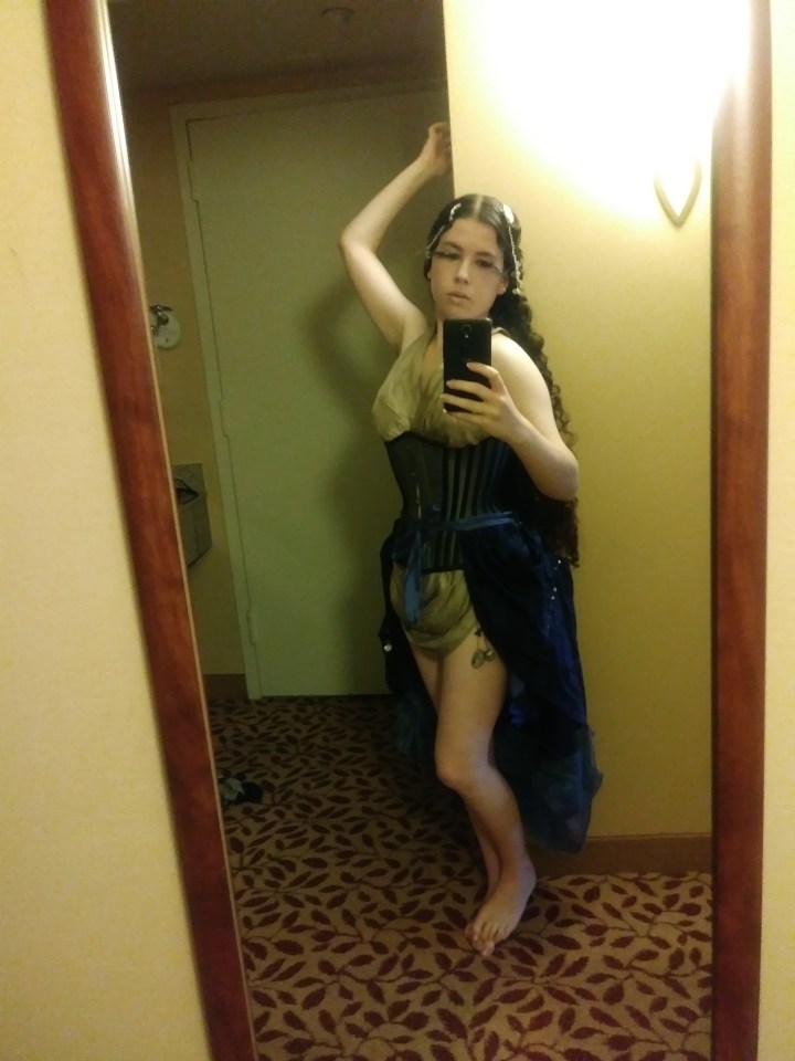 A couple years back Jen and I went to maker faire and I wore this steampunk beachcomber slash sea nymph contraption and we took. Zero. Pictures. When I saw the pool party was “Realm of the Goblin King” themed I figured I’d pull it out again.