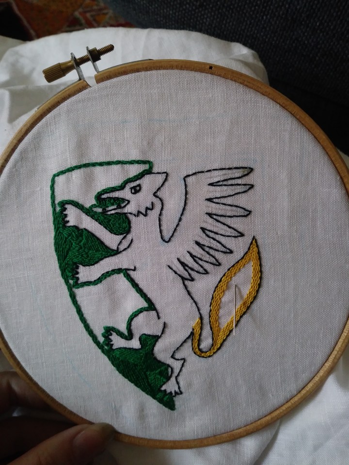 This came to CoCo with me and I made a lot of progress. I might also be possibly making Darrin more garb because he has even less than I do and although he is capable of making his own I can do it faster and embroider the heck out of it.