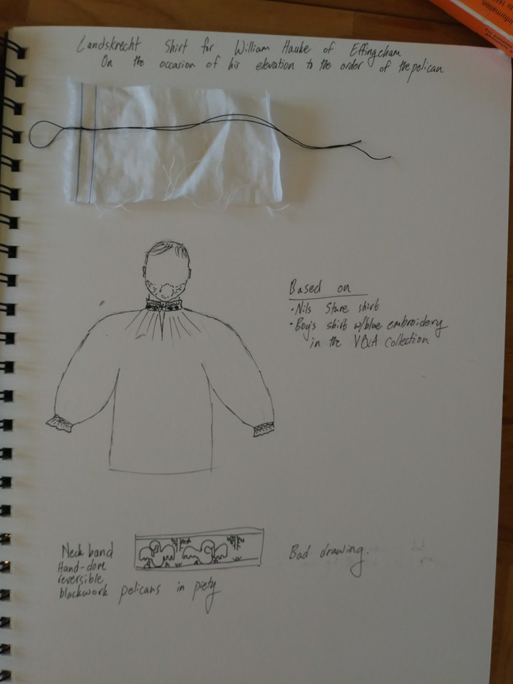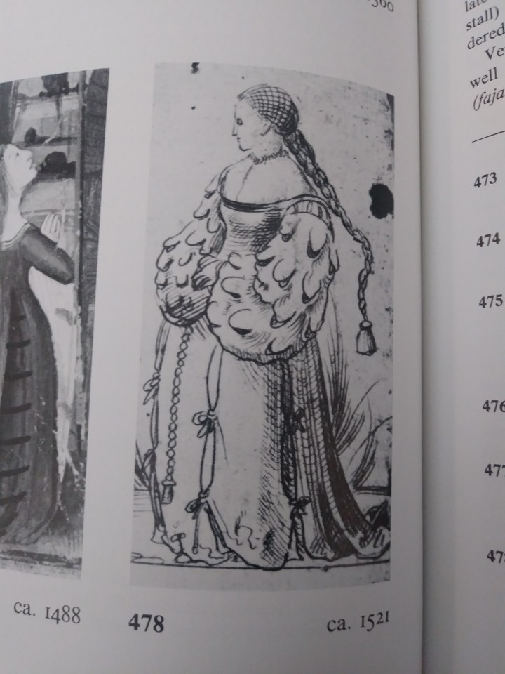 I based on the Nils Sture shirt and the 1535 boy’s shirt in the V&A (the first one in PoF 4). I am cheating slightly– instead of making the ruffles as separate pieces, it’s going to be an integral frill, mostly to save time. Finding references for shirt cuff styles was a pain (the Germans apparently did not like removing their wams/waffenrocs) but I did find some.