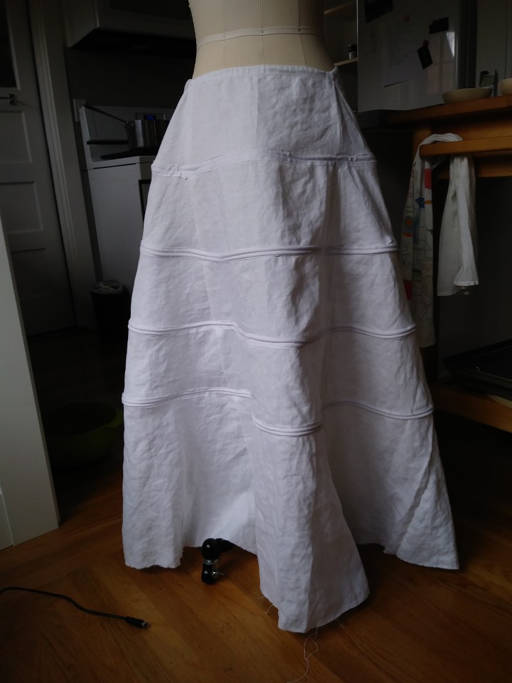 Bad news: I’ve been farthingale-ing, and it’s been harrowing. I think I avoided permanent damage to my sewing machine. I think.
