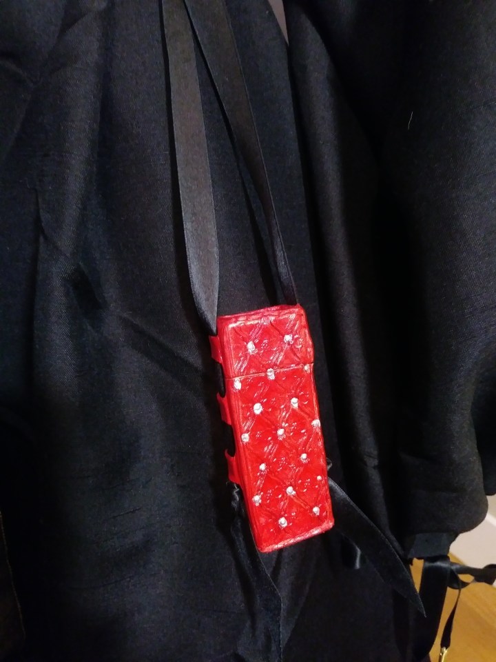 That is two lines of 550 paracord encased in a piece of 3/4″ twill tape. Doing this was hard, mostly because the seam allowances were tiny and my piping foot doesn’t grip as well as I would like. As a result, the whole thing is a little…. Wonky.
