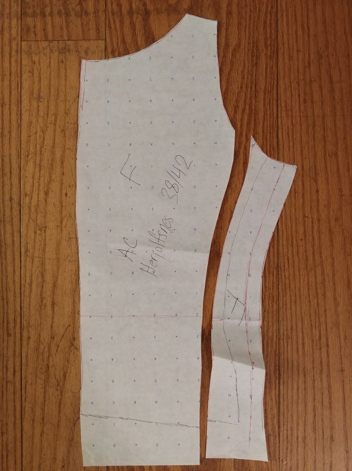 The original body block trace is in black, the modified pattern is in red. Then I just…chopped the side off.